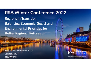 Regional Studies Association (RSA) Winter Conference, ‘Regions in Transition: Balancing Economic, Social and Environmental Priorities for Better Regional Futures’, London, 10–11 November 2022