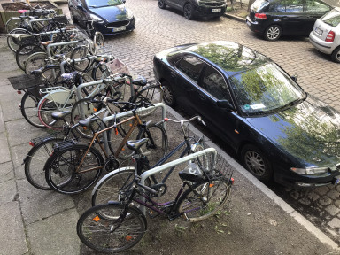 Cycling cities of the future face the challenge of transforming urban space to accommodate cycling infrastructure – this includes residential bicycle parking. Taking the emerging cycling city of Hamburg as a case, I investigate the topic of residential bicycle parking in established urban neighbourhoods. In Hamburg, diverse constellations of actors and varied urban morphological, regulatory, institutional-organizational, and external factors converge to transform urban space in unique ways. By focusing on residential bicycle parking and the key actors responsible for its planning and implementation, I hope to shed light on fine-grained urban spatial shifts and processes at play as this city moves towards a low-carbon, active-mobility future.